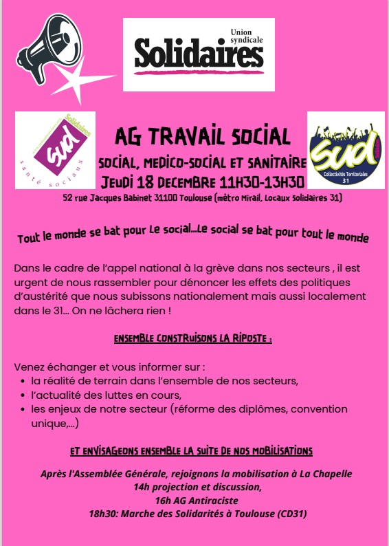 La fédération SUD Santé-Sociaux fait le choix d’un syndicalisme différent qui oeuvre dans le secteur sanitaire et social comme dans le champ de l’interprofessionnel, à rassembler les forces syndicales et associatives qui veulent agir pour combattre toutes formes d’exploitation, d’exclusion sociale, de racisme et de sexisme. Ce syndicalisme favorise l’information en direction des salariés, condition pour qu’ils prennent eux-mêmes en charge leurs revendications et développe des modes d’organisation démocratiques, unitaires et auto-gérés : AG, coordinations, comité de grève, collectifs … Il s’organise selon les principes du fédéralisme, respectant l’autonomie des structures, leur expression diverse et complémentaire pour une solidarité et une démocratie effectives.